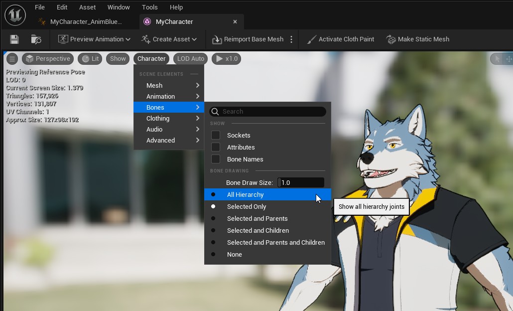 Open your avatar’s skeletal mesh asset in Unreal.
