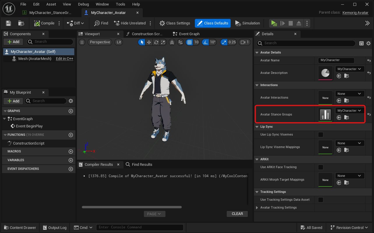 In the Interactions category, reference your DataTable in the field Avatar Stance Groups.