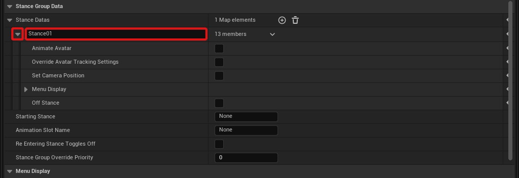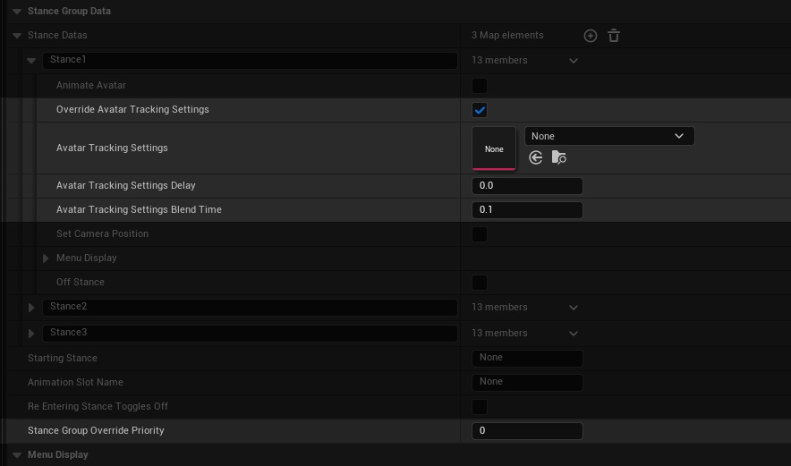 Avatar Stance Groups have a few built-in features. These are controlled by filling out parameters in the DataTable.