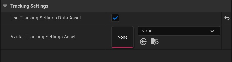 You may also find it convenient to use a Data Asset for your default Tracking Settings. That’s what the “Use Tracking Settings Data Asset” checkbox in your avatar blueprint let’s you do.