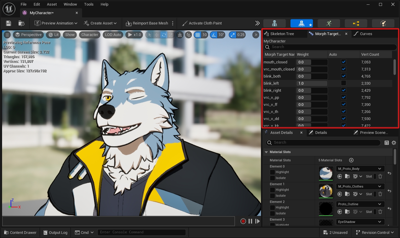 To double-check that your morph targets imported correctly, open the Skeletal Mesh asset and find the Morph Target panel.