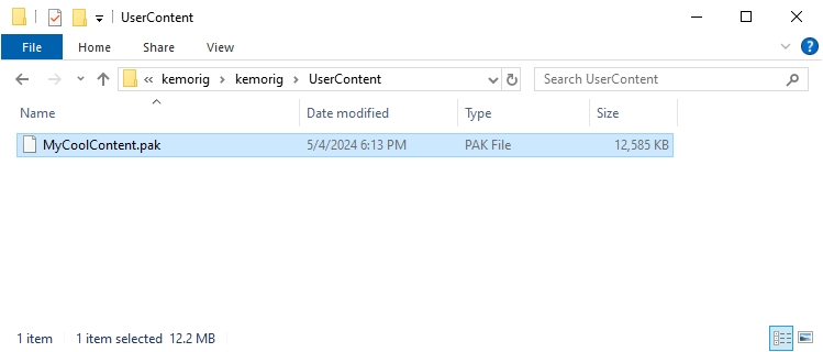 If you added the .pak file while the app was running, you can click Refresh User Content to load it.