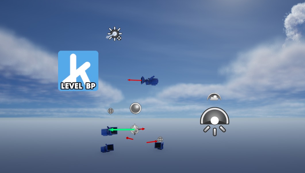 - Sky Light - creates ambient light (i.e. non-directional light, ensures surfaces not in direct sunlight are not pitch-black). This actor can do this using the actual sky of the level, or a cubemap. In this case, it uses a cubemap.